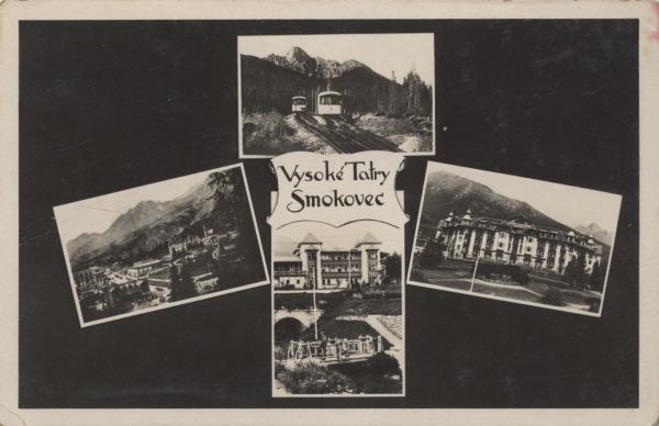 Willa w Starym Smokowcu. Pomiędzy zdjęciami napis: Vysoké Tatry. Smokovec.