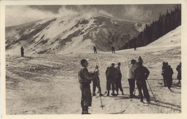 Narciarze na Polanie Kondratowej. W tle Kopa Kondracka.