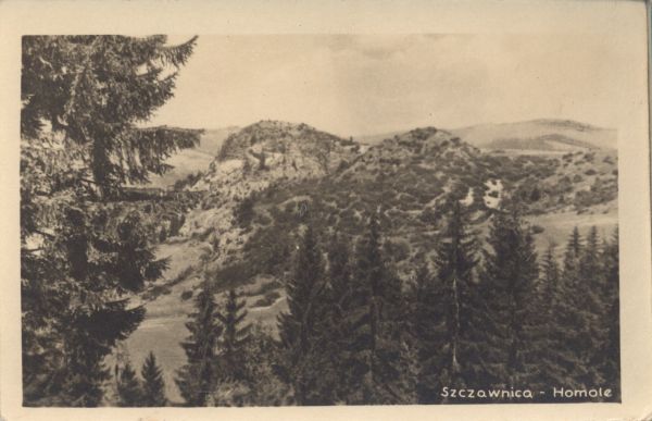 Wąwóz Homole w Małych Pieninach. U dołu po prawej stronie wpisany tytuł: Szczawnica - Homole.