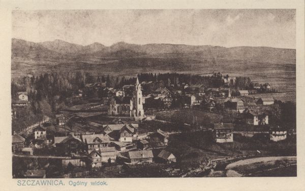 Panorama na Szczawnicę ze stoków Palenicy. Pod zdjęciem drukowany tytuł.