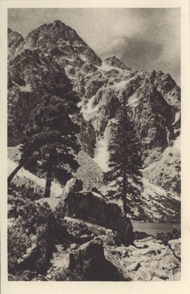 Limba (Pinus cembra L.) nad Morskim Okiem. W tle Wielki Mięguszowiecki Szczyt.
