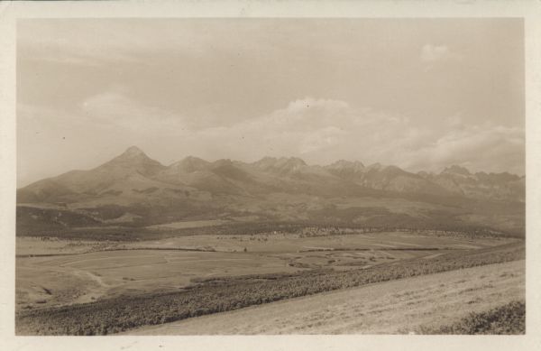 Panorama Tatr Wysokich od Ważca. Z lewej Krywań.