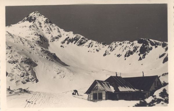 Schronisko Kieżmarskie w Dolinie Białych Stawów w zimie. W tle Jagnięcy Szczyt.