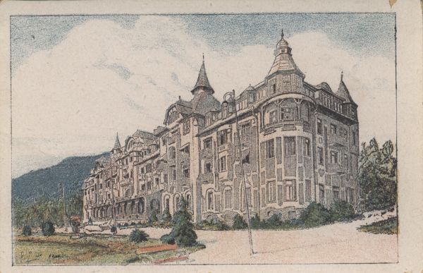 Reprodukcja obrazu Otokara ©táfla przstawiaj±cego Grand Hotel Praga w Tatrzańskiej Łomnicy.
