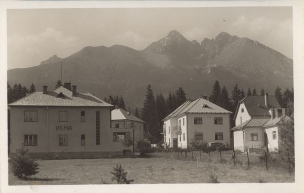 Pensjonat Vilma w Tatrzańskiej Łomnicy. W tle Łomnica i Kieżmarski Szczyt.