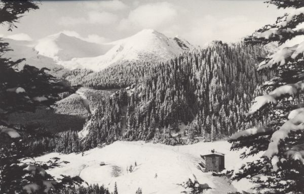 Hotel górski na Kalatówkach w zimie. W tle Goryczkowa Czuba.