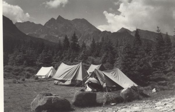 Obozowisko pod namiotami w Dolinie G±sienicowej. W tle Ko¶cielec i ¦winica.