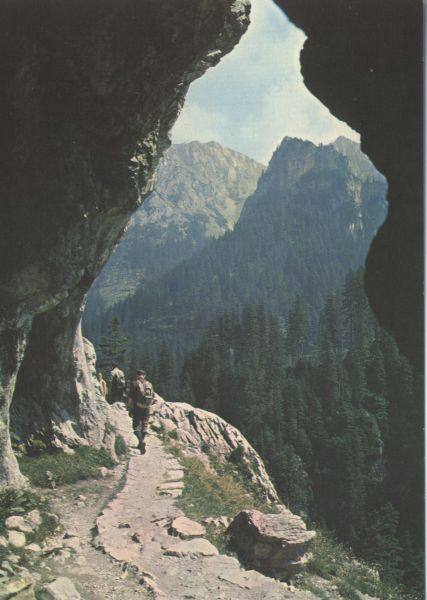 Turyści na szlaku w Dolinie Kościeliskiej. Widok z Obłazkowej Jamy na Saturn.