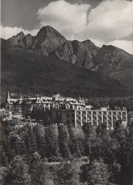Widok na Łomnicê ze Starego Smokowca. Na pierwszym planie Grand Hotel.