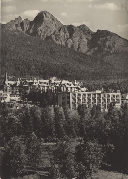 Widok na Łomnicę ze Starego Smokowca. Na pierwszym planie Grand Hotel.