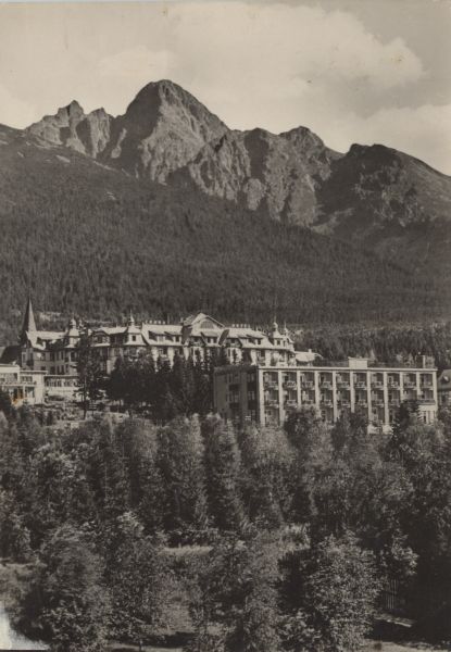 Widok na Łomnicê ze Starego Smokowca. Na pierwszym planie Grand Hotel.