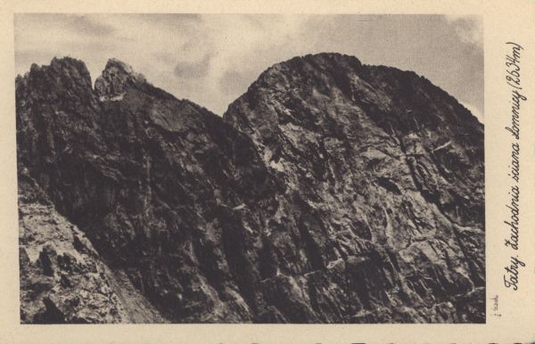 Zachodnia ściana Łomnicy. Na marginesie wydrukowane nazwisko fotografa i tytuł.