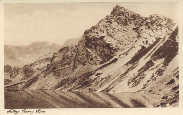 Czarny Staw G±sienicowy w Dolinie G±sienicowej. Nad nim Ko¶cielec. W tle Kozi Wierch. Pod zdjęciem drukowany tytuł: Tatry. Czarny Staw.