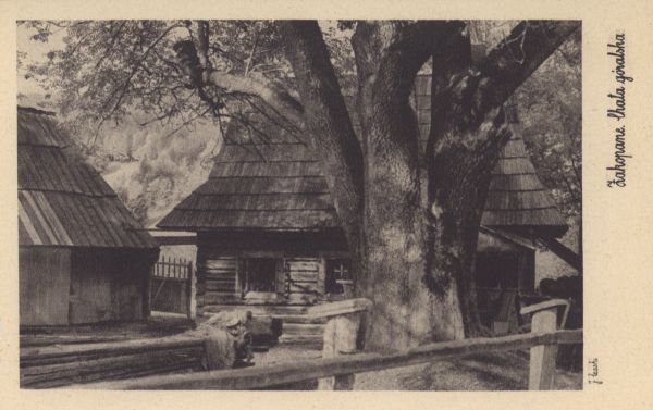 Chata góralska w Zakopanem. Na marginesie po prawej stronie drukowany opis: [fot.] J. Czaski Zakopane. Chata góralska.
