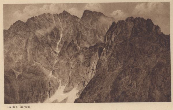 Gerlach i Batyzowiecki Szczyt. Pod zdjęciem drukowany tytuł: TATRY. Garłuch.