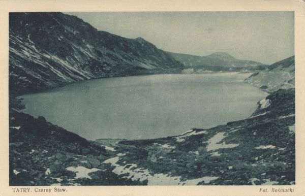 Czarny Staw G±sienicowy w Dolinie G±sienicowej. Pod zdjęciem drukowany opis: TATRY. Czarny staw. Fot. Bo¶niacki.