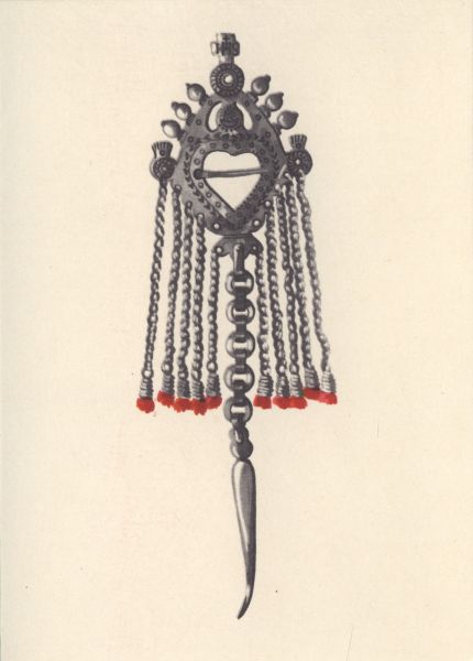 Spinka "zbójnicka" z metalu. ozdoba męskiego stroju góralskiego. wieś Bukowina Tatrzańska, pow. Nowy Targ, Podhale.