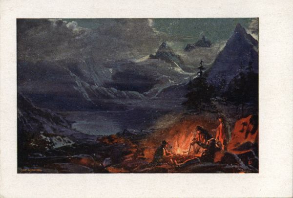 Zakopane - Gawęda górali przy ognisku. J. Kurylas, pinx.
