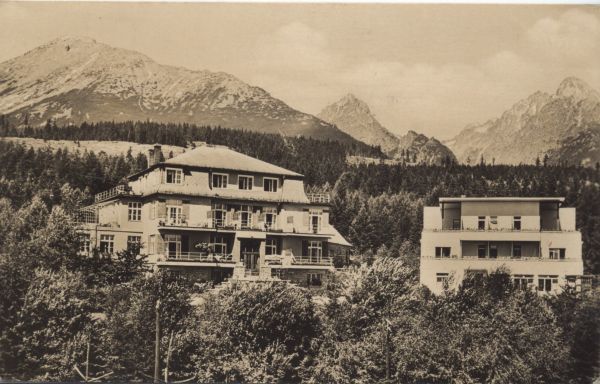 VYSOKÉ TATRY - Horný Smokovec 1000 m. ROH Zdravá generácia - Zotavovňa "Partizán". Slavkovský štít 2453 m. Stredohrot 2440 m. Skupina Lomnického štítu.