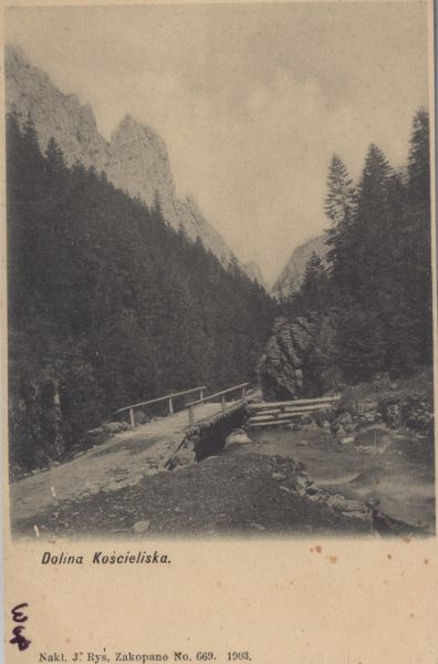 Raptawicka Turnia w Dolinie Kościeliskiej. Dołem płynie Kościeliski Potok.