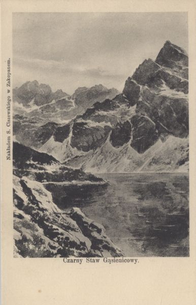 Reprodukcja obrazu Walerego Eljasza - Radzikowskiego pt. Czarny Staw G±sienicowy. Pod reprodukcj± wydrukowany tytuł, na marginesie z lewej strony nakładca.