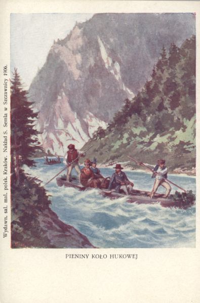 Reprodukcja obrazu Walerego Eljasza - Radzikowskiego pt. Pieniny koło Hukowej. Pod reprodukcją wydrukowany tytuł, na marginesie po lewej stronie wydawca i nakładca.