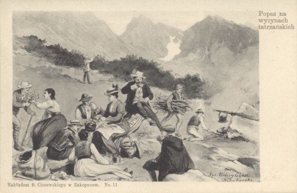 Reprodukcja rysunku Walerego Eljasza - Radzikowskiego pt. "Popas na wyżynach tatrzańskich".