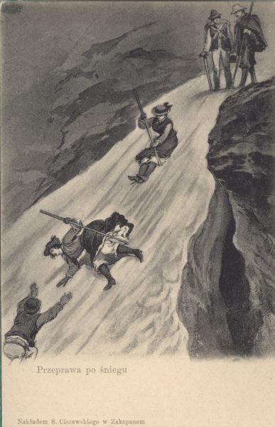 Reprodukcja obrazu Walerego Eljasza - Radzikowskiego pt. "Przeprawa po śniegu".