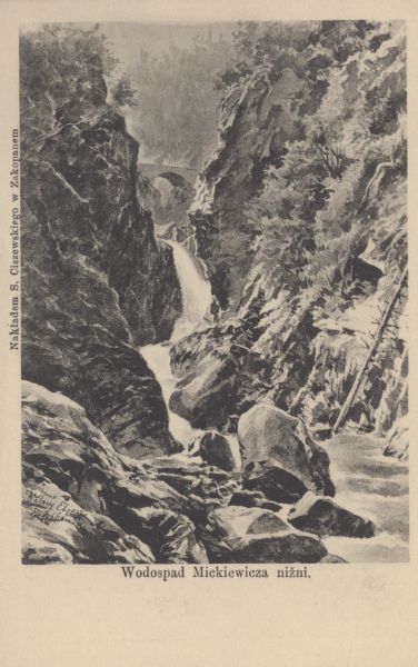 Reprodukcja obrazu Walerego Eljasza - Radzikowskiego pt. "Wodospad Mickiewicza niżni".