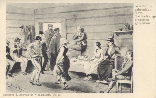 Wieczór w schronisku Tow. Tatrzańskiego z tańcem góralskim.