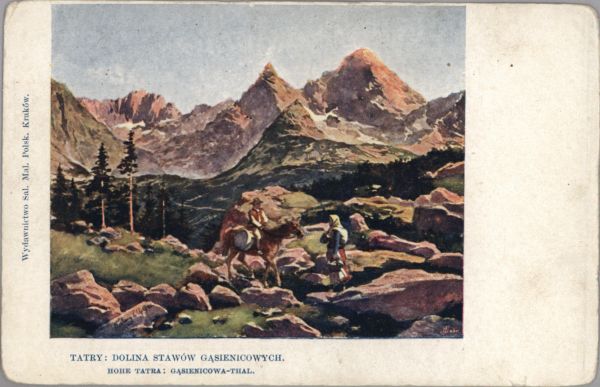 Reprodukcja obrazu Walerego Eljasza - Radzikowskiego pt. Tatry: Dolina Stawów Gasienicowych. Pod reprodukcj± wydrukowany tytuł, także w języku: niem. Na marginesie po lewej stronie wydawca.