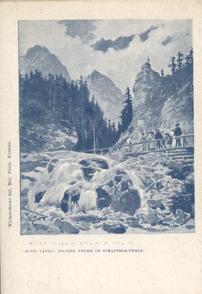 Reprodukcja obrazu Walerego Eljasza - Radzikowskiego pt. Tatry: Skała Jelinka w Dolinie Strążyskiej.