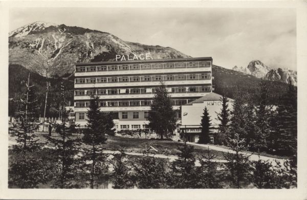 Vysoké Tatry - Nový Smokovec 1010 m. Liečebný dom "Palace". Slavkovský štít 2453 m.