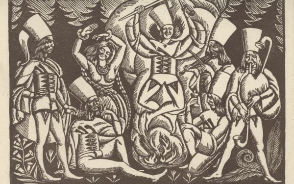 Wł. Skoczylas. "Taniec zbójników" drzeworyt.