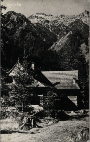 Pocztówka bez obiegu pocztowego, zapisana. Dodatkowo pieczęć: "SCHRONISKO P.T.T. W ROZTOCE 1030 m.".