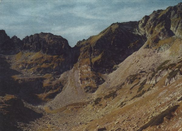 TATRY WYSOKIE. Wrota Chałubińskiego (2022 m). Po lewej grań Ciemnosmreczyńskiej Turni. Po prawej grań Szpiglasowego Wierchu.
