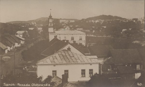 Posada Olchowska, dzielnica Sanoka. Na dole po lewej stronie wpisany tytuł.