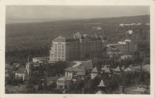 Widok na zabudowani Nowego Smokowca. W głębi budynki sanatorium Instytutu Chorób Płuc.