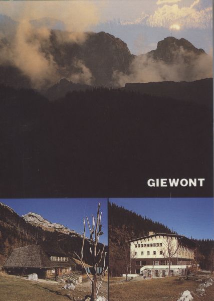 Hotel górski na Kalatówkach. Pomiędzy zdjęciami napis: GIEWONT.
