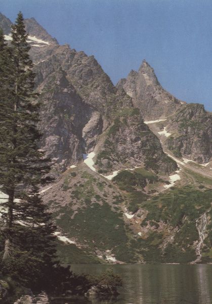 TATRY WYSOKIE. Tatrzański Park Narodowy. Morskie Oko, w głębi Mnich (2068 m).
