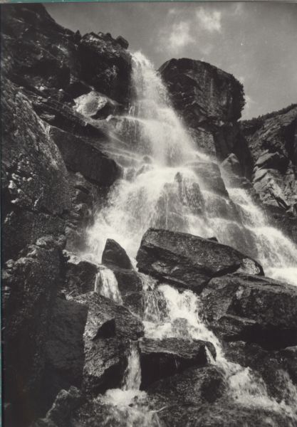 Tatry Wysokie. Wodospad Skok w Dolinie Młynickiej. Tytuł również w języku: niem., ang., fr.