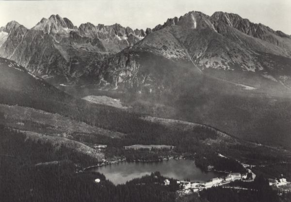 Tatry Wysokie. Szczyrbskie Jezioro z panoram± tatrzańskich szczytów. Tytuł również w języku: niem., ang., fr.