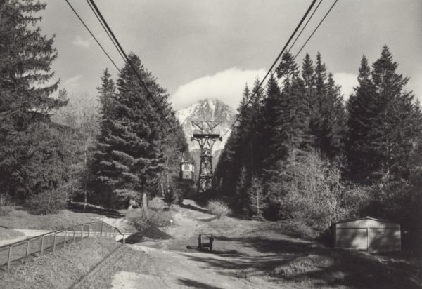 Dolna stacja kolei linowej na Łomnicę w Tatrzańskiej Łomnicy. W tle Łomnica.