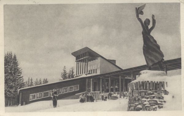 Górna stacja kolei linowo-terenowej na Gubałówce w zimie. Z prawej na pierwszym planie rzeźba Polonia Restituta.