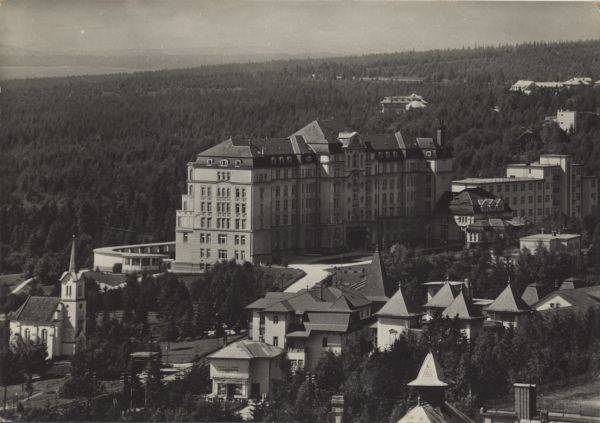 Widok na zabudowania Nowego Smokowca. W centralnej części budynki sanatorium Instytutu Chorób Płuc.