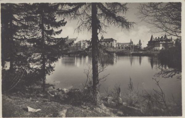 Szczyrbskie Jezioro. Nad brzegiem widoczne hotele Krywań i Hviezdoslav.
