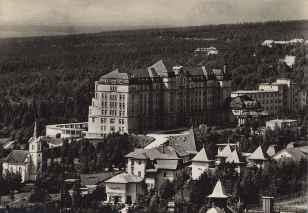 Widok na zabudowania Nowego Smokowca. W centralnej części budynki sanatorium Instytutu Chorób Płuc.