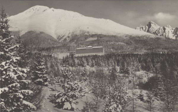 Sanatorium w Nowym Smokowcu zimą. W tle Sławkowski Szczyt i Łomnica.