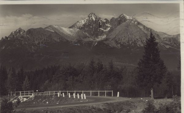 Widok na grupę Łomnicy od południa, z lewej Pośrednia Grań. Na pierwszym planie Droga Wolności.