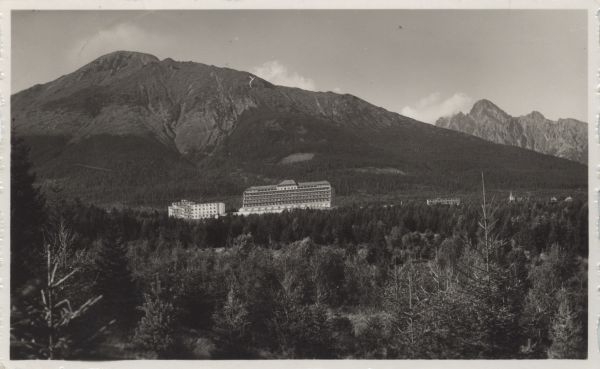 WYSOKIE TATRY - Nowy Smokowiec. Sanatorium V.P.Ú. W tle Sławkowski Szczyt i Łomnica.